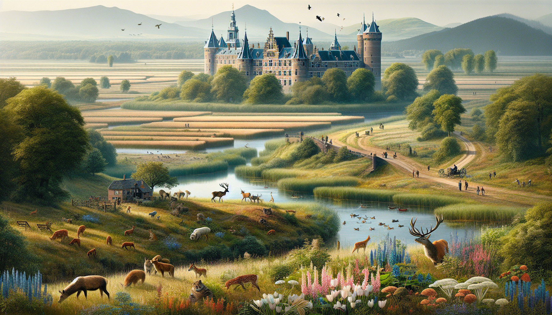 nature and landscape with castel in the Netherlands with moving details like animals and people