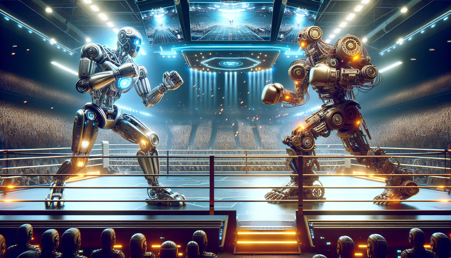 make a wallpaper like two robots are fighting a boxing macth in arena