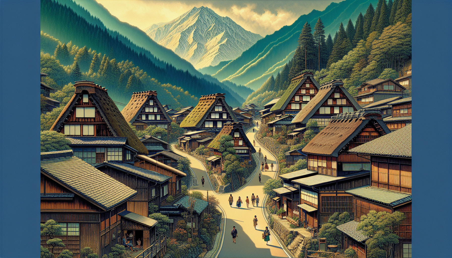 You can create an perfect image of tipical japanese village in mountain with peoples walking in the road