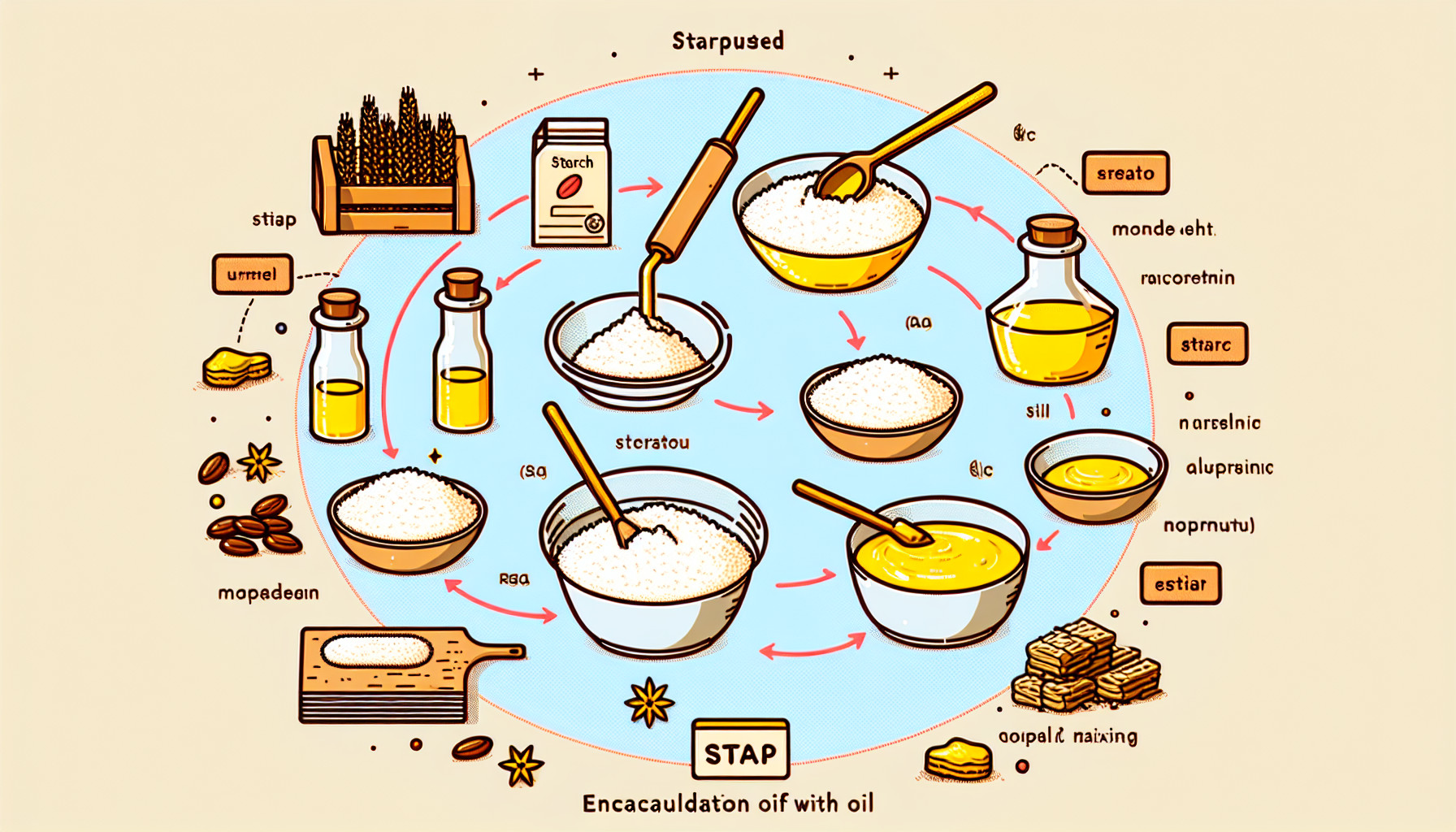 elabore um figura com explicação do processo de encapsulamento de amido com óleos