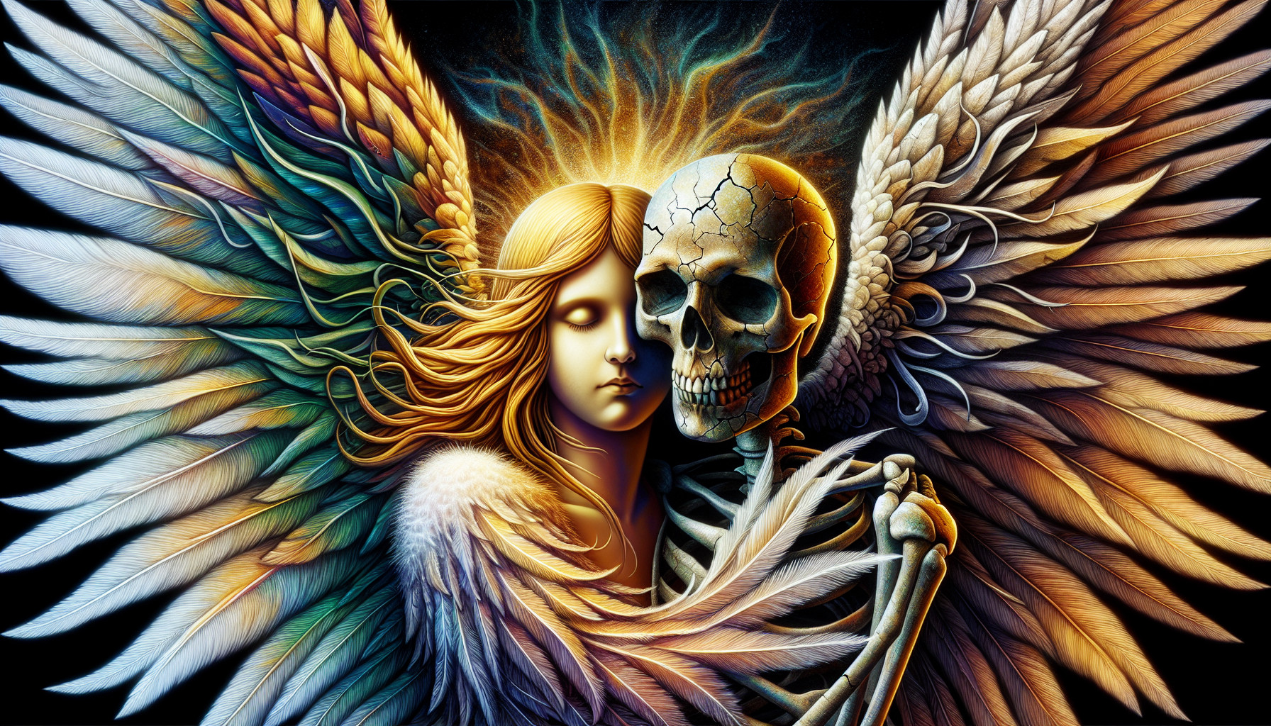 skull and angel intertwined