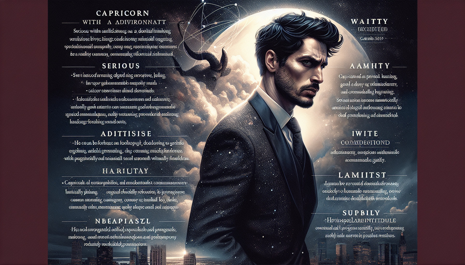 Personnalité• Intelligent et analytique : Il possède une grande capacité de synthèse, un esprit critique affûté et une curiosité intellectuelle remarquable.• Adaptable mais structuré : Le Capricorne lui donne le sens de l’organisation et de la discipline, tandis que l’ascendant Gémeaux lui apporte souplesse et agilité mentale.• Humour incisif : Il utilise souvent l’humour comme mécanisme de défense, brillant dans ses réparties mais parfois distant émotionnellement.• Ambitieux et stratégique : Il sait construire des projets sur le long terme tout en gardant une capacité à improviser et à s’adapter aux imprévus.Organisé et polyvalent : Il excelle dans les environnements qui demandent à la fois rigueur et créativité.• Communicatif et stratégique : Il peut briller dans les métiers liés à la communication, à la gestion ou à l’analyse.• Besoin de reconnaissance : Il travaille dur pour atteindre ses objectifs et valorise les résultats concrets.Ce natif est un véritable équilibriste entre Terre et Air : sérieux sans être rigide, curieux sans être dispersé. Il peut parfois douter de lui-même, mais son intelligence et sa capacité d’adaptation font de lui un homme fascinant et profondément humain.