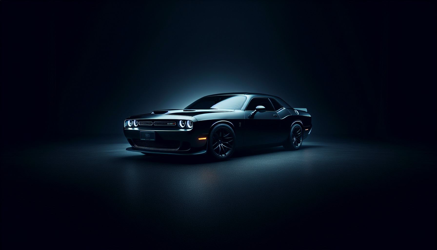 a complete darkest black background with a dodge challenger