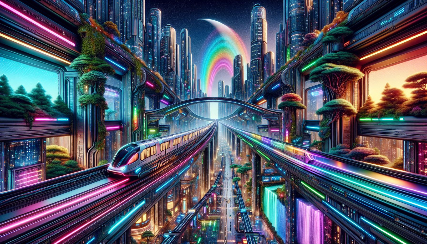 A cyber punk type city with beautiful landscape